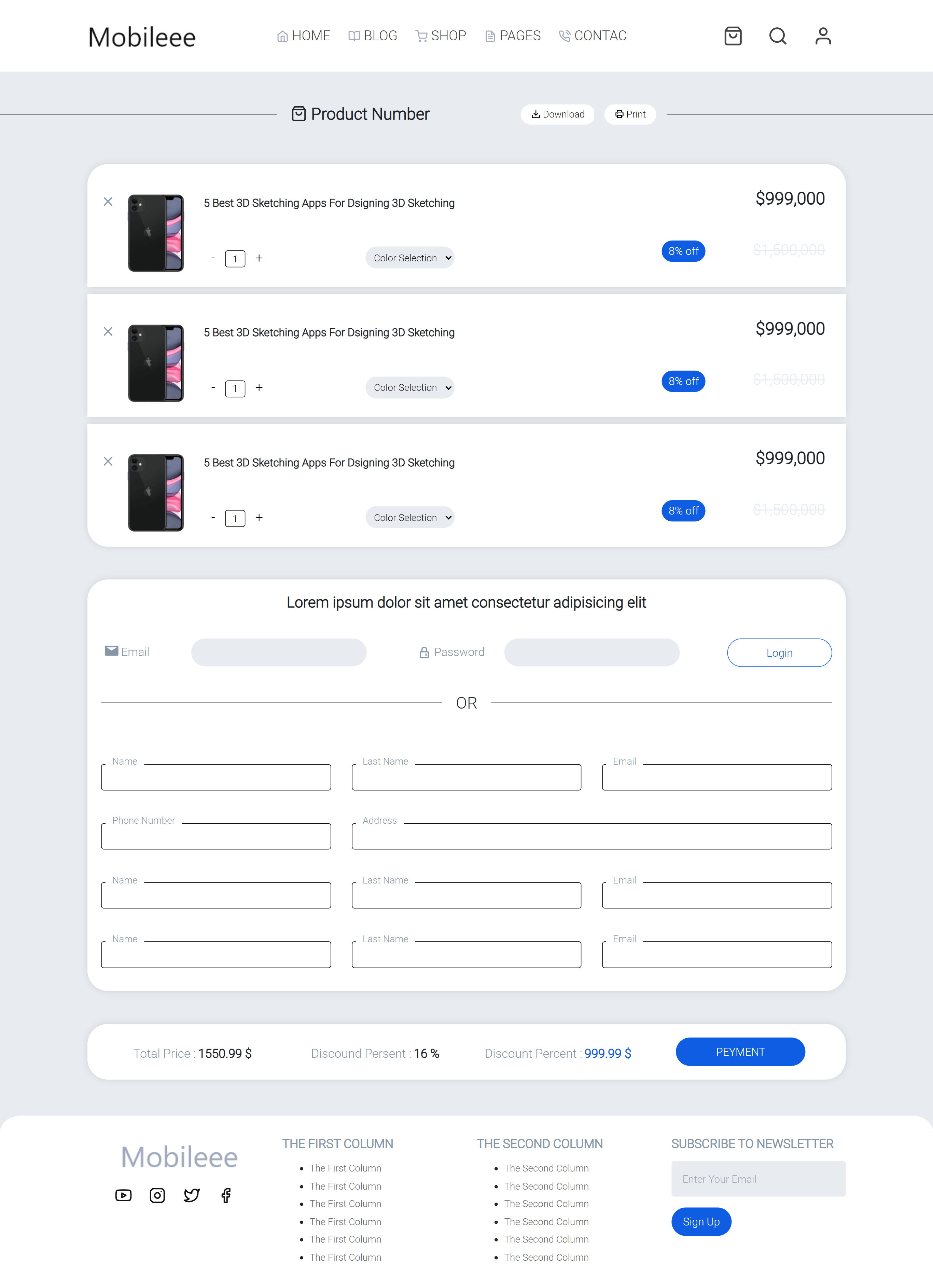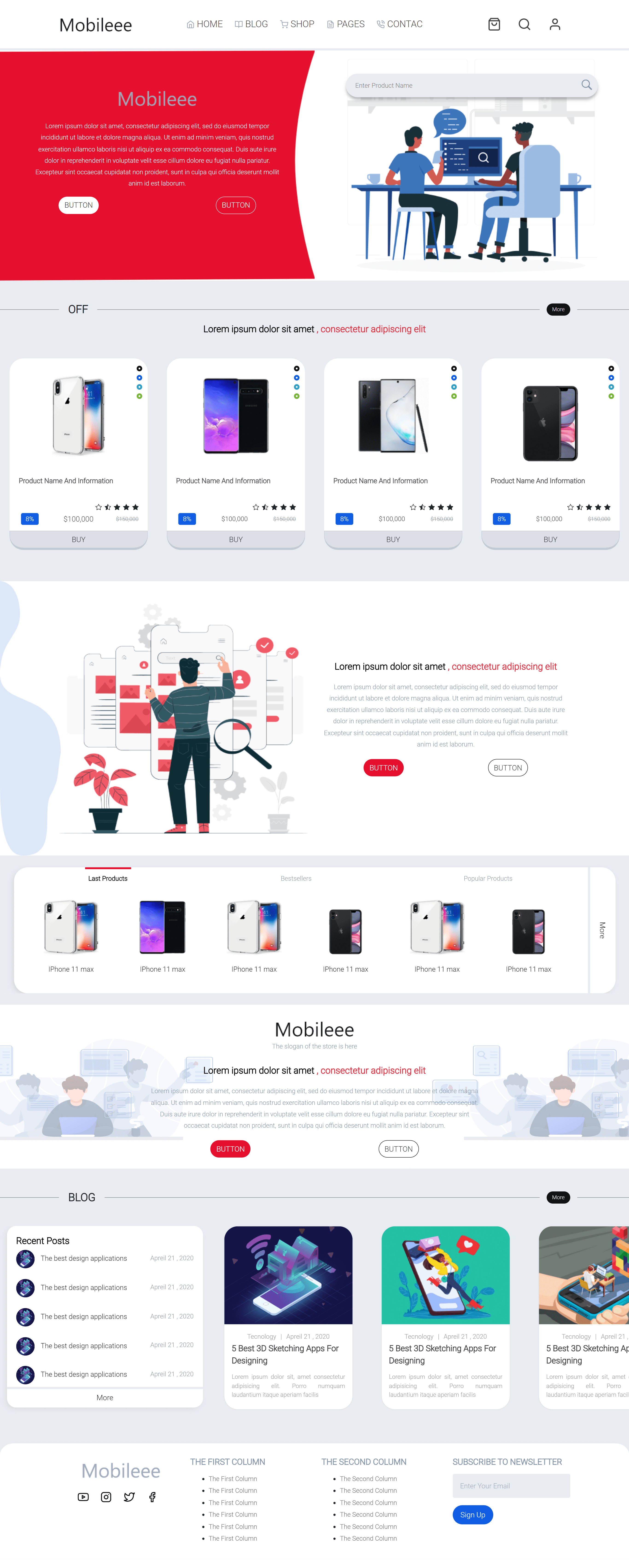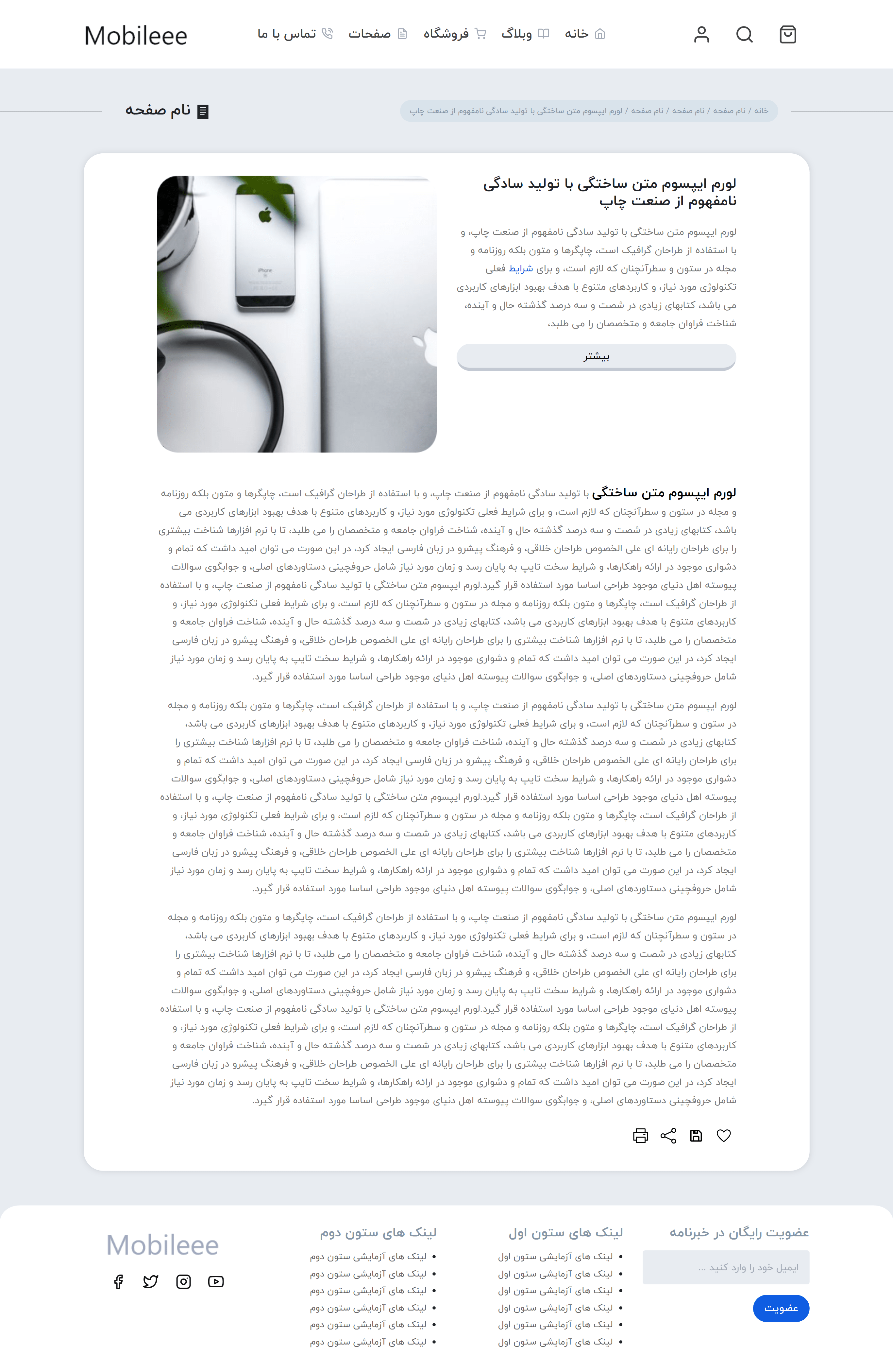 موبایلی، فروشگاه فروش موبایل در برندهای متفاوت است و سایت متعلق به آن شامل ۱۴ صفحه است که شامل؛ پنل کاربری، لندینگ پیج، صفحه محصولات، معرفی ویژگیهای هر محصول و بلاگهای مرتبط با گوشیهای هوشمند میباشد.